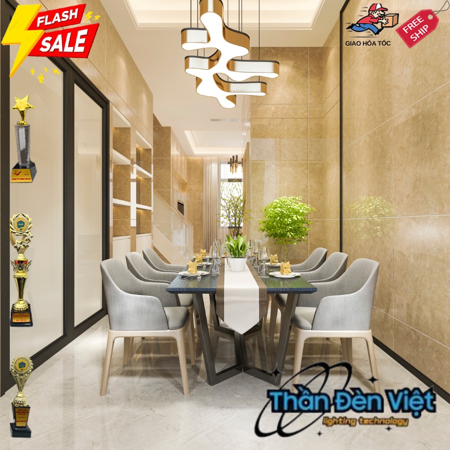 Mẫu đèn trang trí hiện đại này đang trở thành sự lựa chọn ưa thích của nhiều gia chủ, được ưa chuộng đặc biệt nhờ kích thước khá lớn và khả năng tạo điểm nhấn tinh tế cho không gian sống. Được treo ở chính giữa phòng khách, chiếc đèn chùm này không chỉ là nguồn sáng mà còn là một tác phẩm nghệ thuật độc đáo, làm tăng thêm vẻ đẹp và sang trọng cho căn phòng.